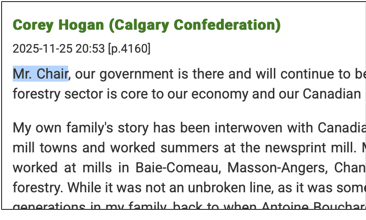 This is corrected in Hansard, which is a faithful but not literal transcription of discussion in the House. In addition to correcting errors like this, Hansard removes pause words, repetitions, corrects other unintentional errors and even usually omits the reflexive and unnecessary “Thank you, Mr. Speaker” that we begin our remarks with.
